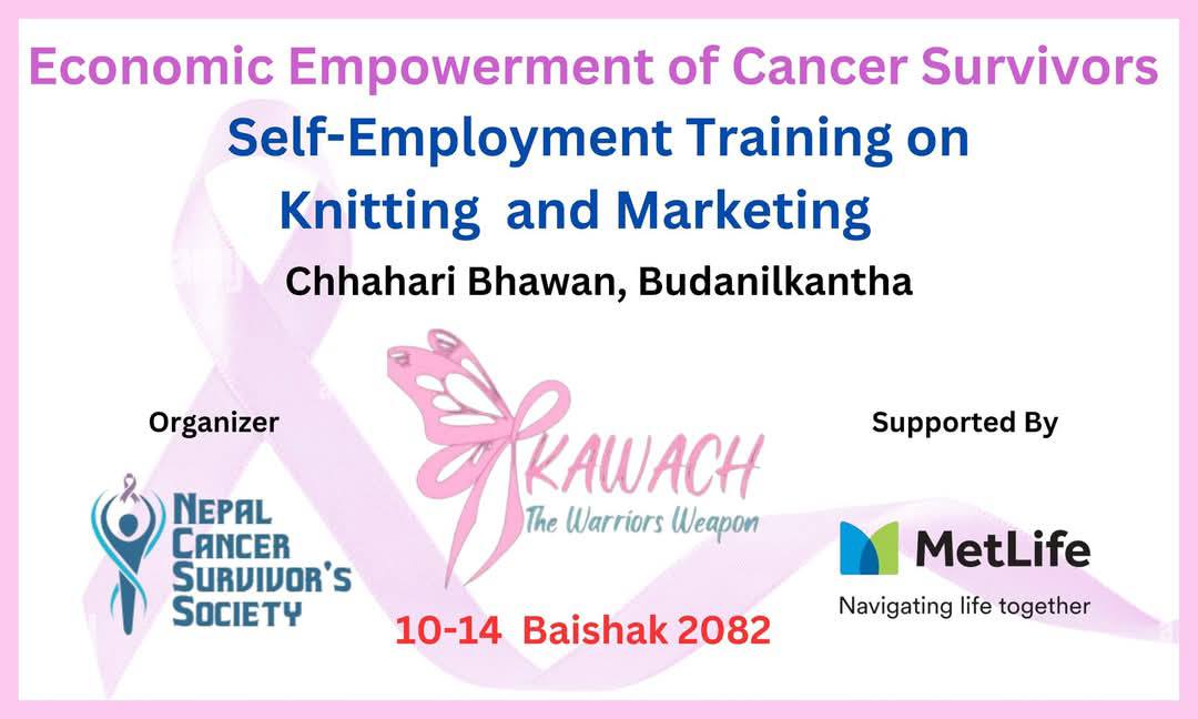 NeCaSS, with the generous support ofMetLife Nepal, successfully completed a 5-day "Self-Employment Training – Knitting and Marketing" program for cancer survivors.
